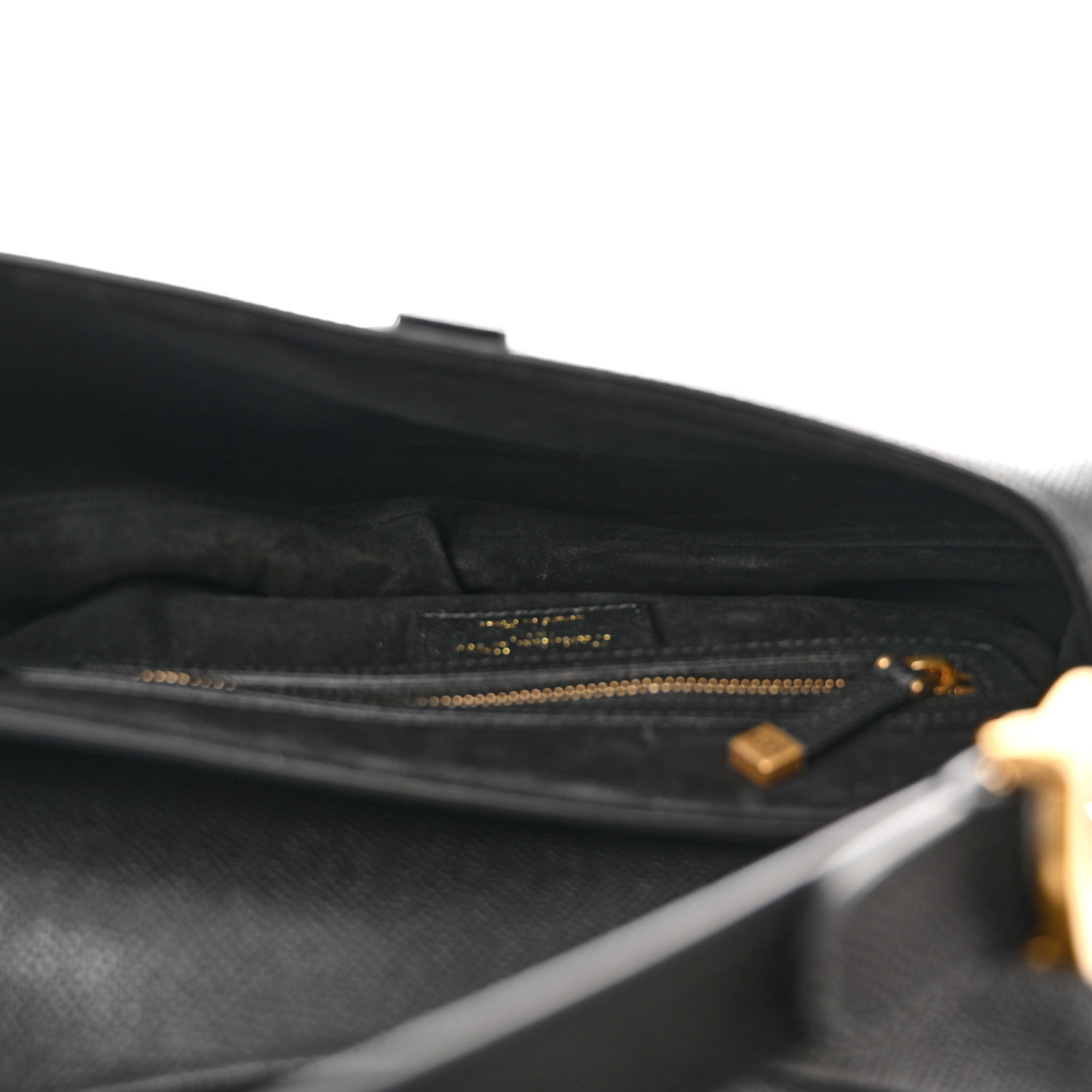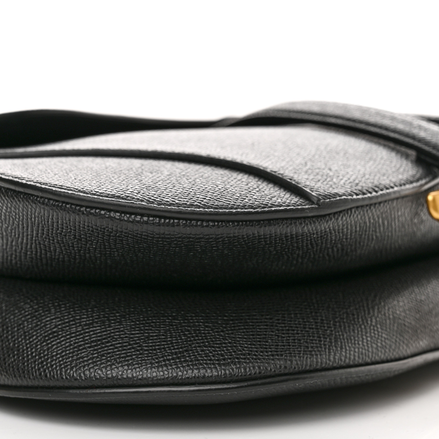 This is an authentic CHRISTIAN DIOR Grained Calfskin Saddle Bag With Strap in Black. This bag features the saddle bag shape, short leather shoulder strap with a polished brass "C" and "D" anchors on either end of the handle for handle and a prominent hanging Dior "D" charm. The interior of the bag is a black microfiber textile with a zipper pocket.