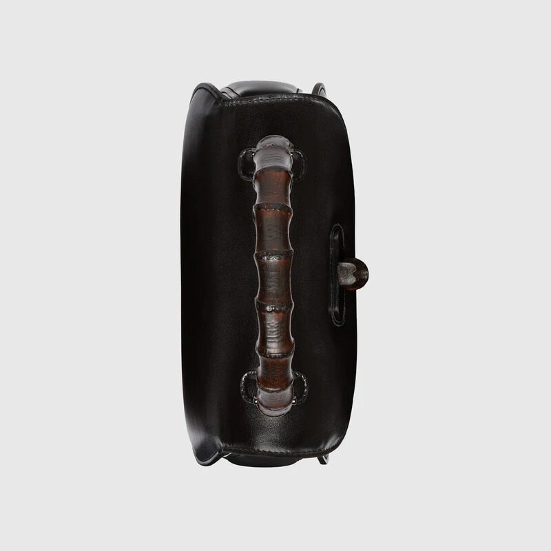 A material that speaks to the long-lasting traditions that come together to create Gucci's heritage, this bag's bamboo handles are expertly curved using a flame鈥攁 process originally conceived by Florentine artisans during the postwar period. The cuir leather style is enriched two detachable straps that allows the accessory to be worn on the shoulder or as a top handle.