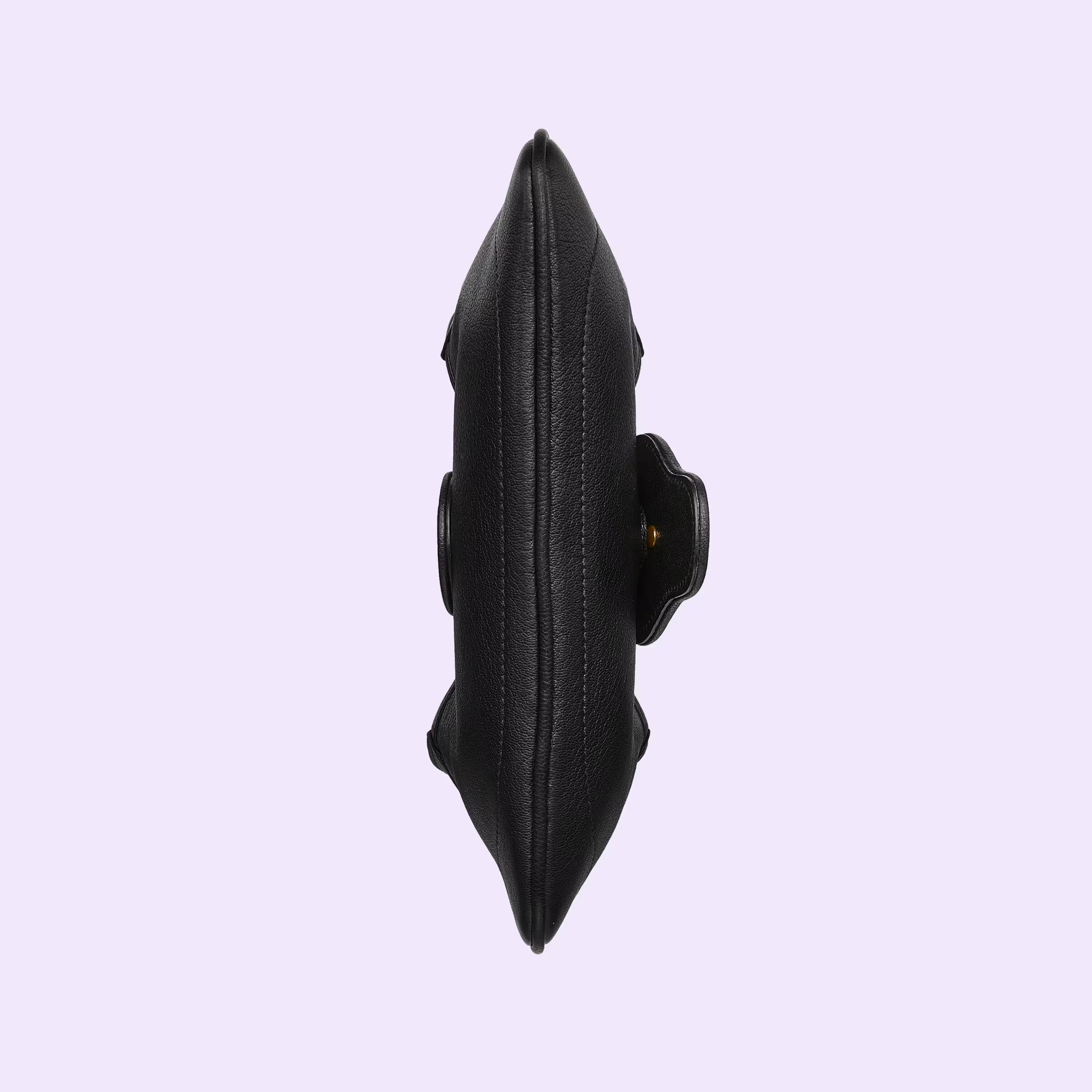 The Cruise 2023 Gucci Cosmogonie collection was presented against the backdrop of the historic Castel del Monte in Italy. The show brought together aesthetics from distant eras and geographies, and linked elements from the past with the present. This new crescent-shaped shoulder bag is part of a collection shown on the runway and was inspired by the House’s archives, it is crafted in soft leather and features the Double G emblem—a code originally introduced in the 1970s.