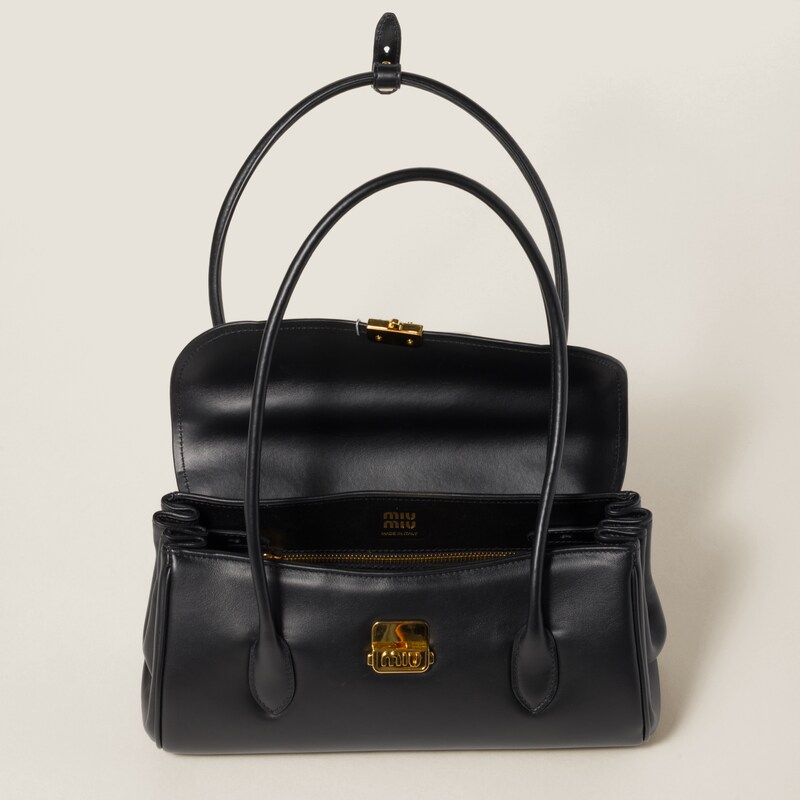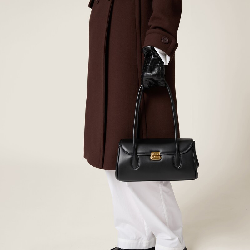 The classic design of this shoulder bag is given a contemporary twist thanks to the gold-tone metal lettering logo and the distinctive, slightly padded leather. The elegant front flap and characteristic double handle express the unmistakable contrast between experimentation and iconicity.