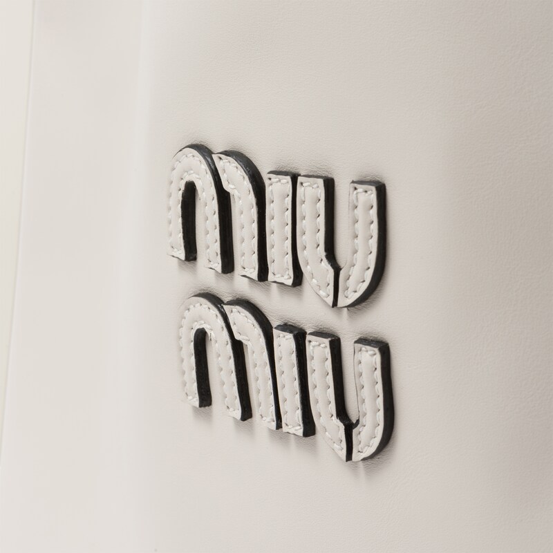 This IVY leather bag enhances a classic style with metal details and contrast stitching. The tonal Miu Miu lettering logo gives the design an iconic and immediately recognizable note.