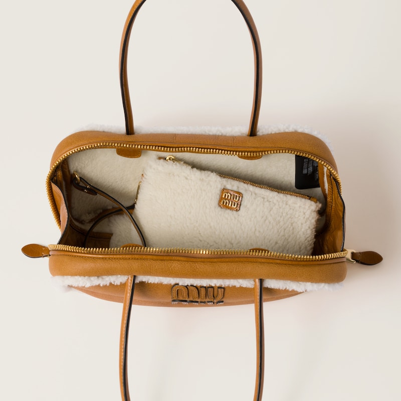 The Beau top-handle bag, enhanced with soft shearling trims, features a voluminous and cosmopolitan style. The lettering logo crosses the boundaries between function and decoration and helps define the bag's distinctive and iconic aesthetic.